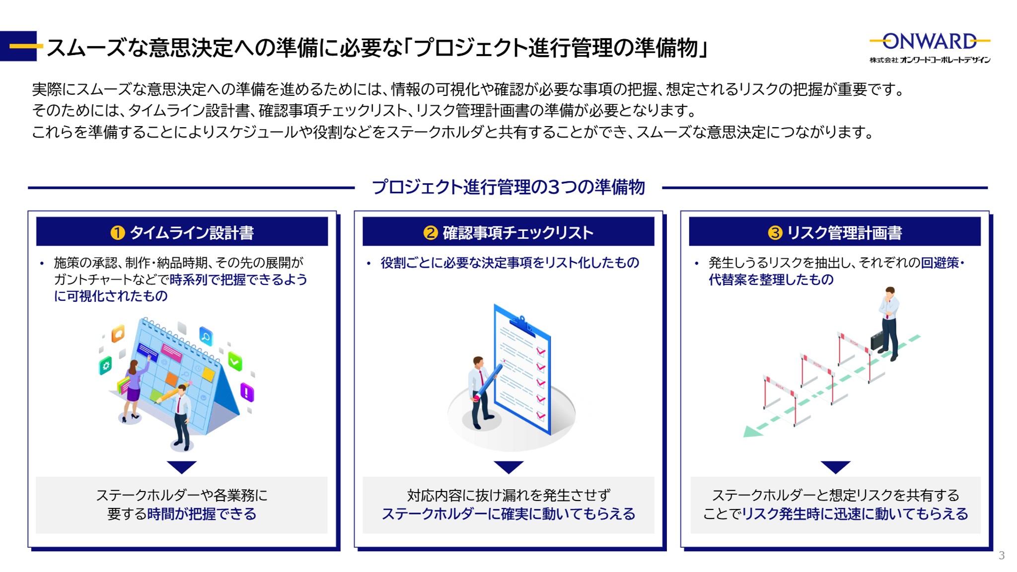 - ●スムーズな意思決定とプロジェクト進行を実現する準備物